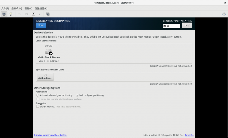 1) 一定要使用刚刚创建的 /var/lib/libvirt/images/template_centos_7_10g.qcow2 作为安装虚拟机的硬件文件